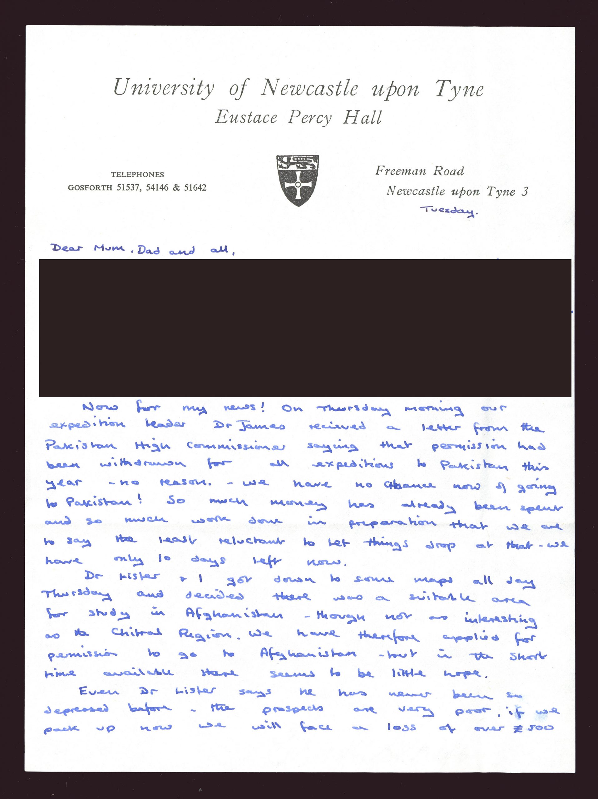 A few months ago, Special Collections at Newcastle University were contacted by one of the original members of the expedition team of the 1965 expedition to Afghanistan. Howard Horsley asked if we would be interested in taking a donation of items relating to arrangements, reports, and the activities that took place during their time completing the scientific study.